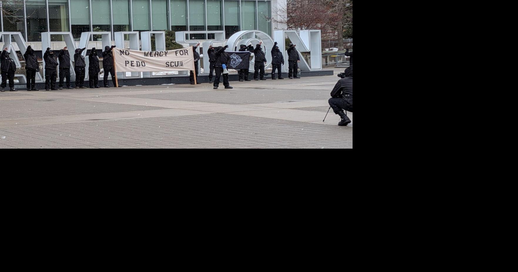 White supremacist group photographed giving Nazi salute at Hamilton city hall